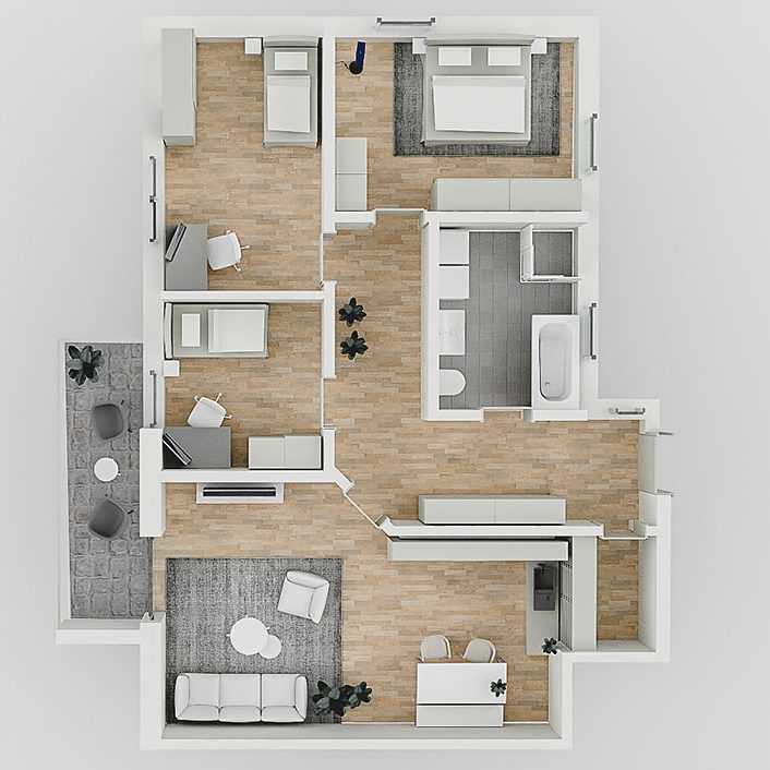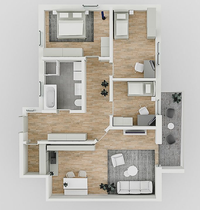 - 2 Kinderzimmer oder 1 Kinderzimmer und 1 Homeoffice-Büro